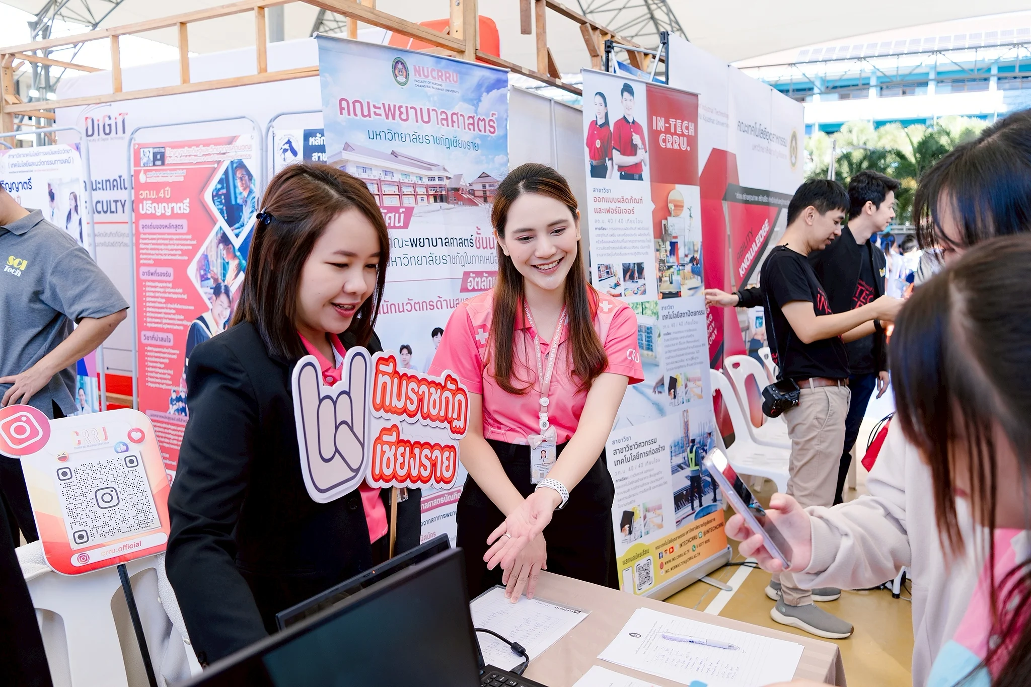 ในงานนี้ มหาวิทยาลัยราชภัฏเชียงรายได้จัด บูธประชาสัมพันธ์ขนาดใหญ่ เพื่อนำเสนอข้อมูลการเรียนต่อในระดับอุดมศึกษา โดยมี คณาจารย์ และบุคลากรจากทุกคณะของมหาวิทยาลัย เข้าร่วมแนะแนวหลักสูตร แนะนำเส้นทางอาชีพ และถ่ายทอดประสบการณ์ตรงในสาขาวิชาต่าง ๆ ให้แก่นักเรียนอย่างใกล้ชิด ทั้งในด้านศาสตร์การศึกษา วิทยาศาสตร์ เทคโนโลยี ภาษา ศิลปกรรม บริหารธุรกิจ รวมถึงหลักสูตรเฉพาะทางที่ตอบโจทย์ทักษะอนาคต