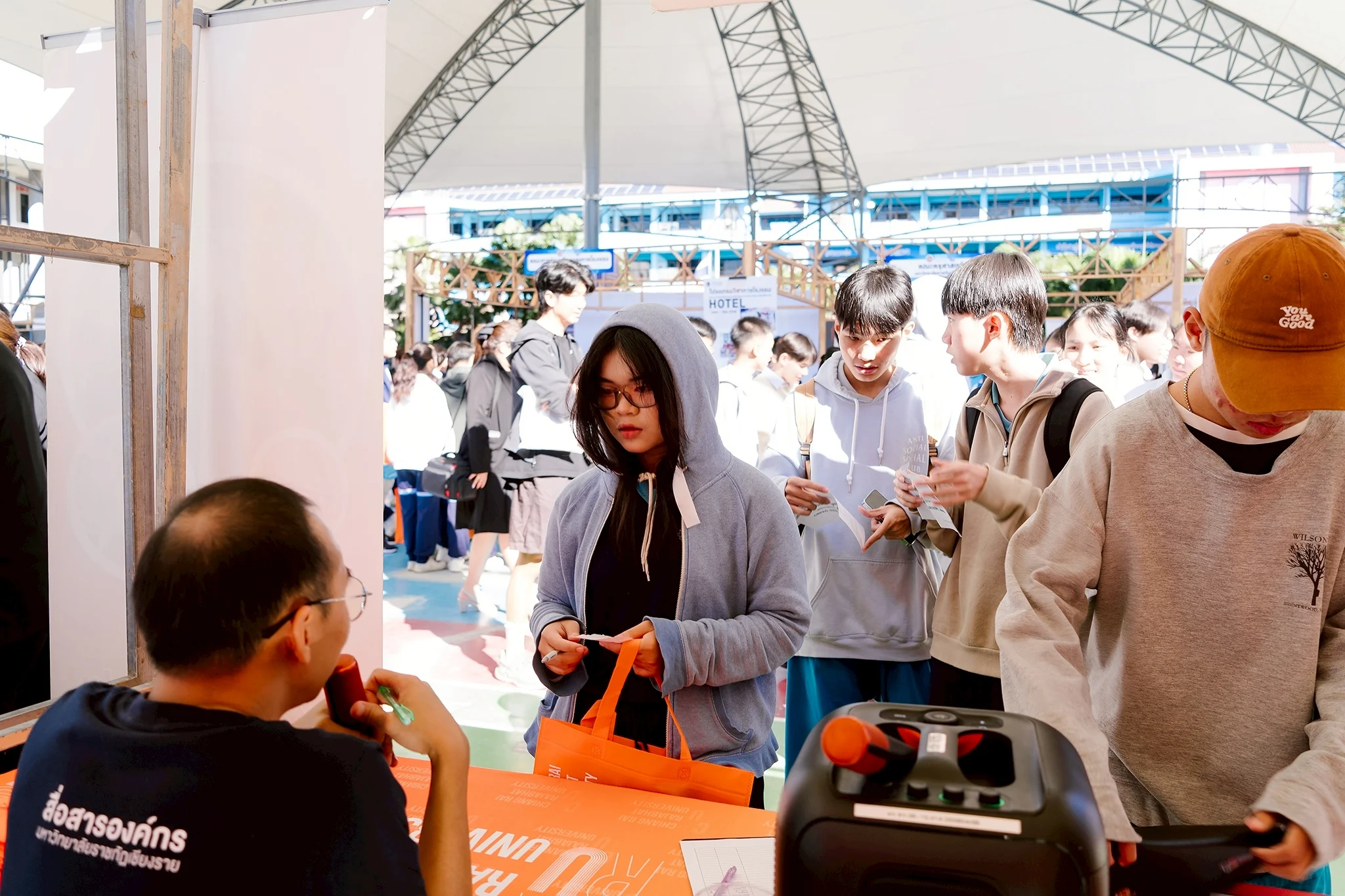 นักเรียนจากหลายโรงเรียนในจังหวัดเชียงรายและพื้นที่ใกล้เคียงให้ความสนใจเข้าร่วมพูดคุยและสอบถามข้อมูลเป็นจำนวนมาก บรรยากาศเต็มไปด้วยความคึกคัก สะท้อนความตื่นตัวของเยาวชนที่กำลังค้นหาเส้นทางการเรียนรู้ที่สอดคล้องกับความสนใจและเป้าหมายอนาคตของตนเอง