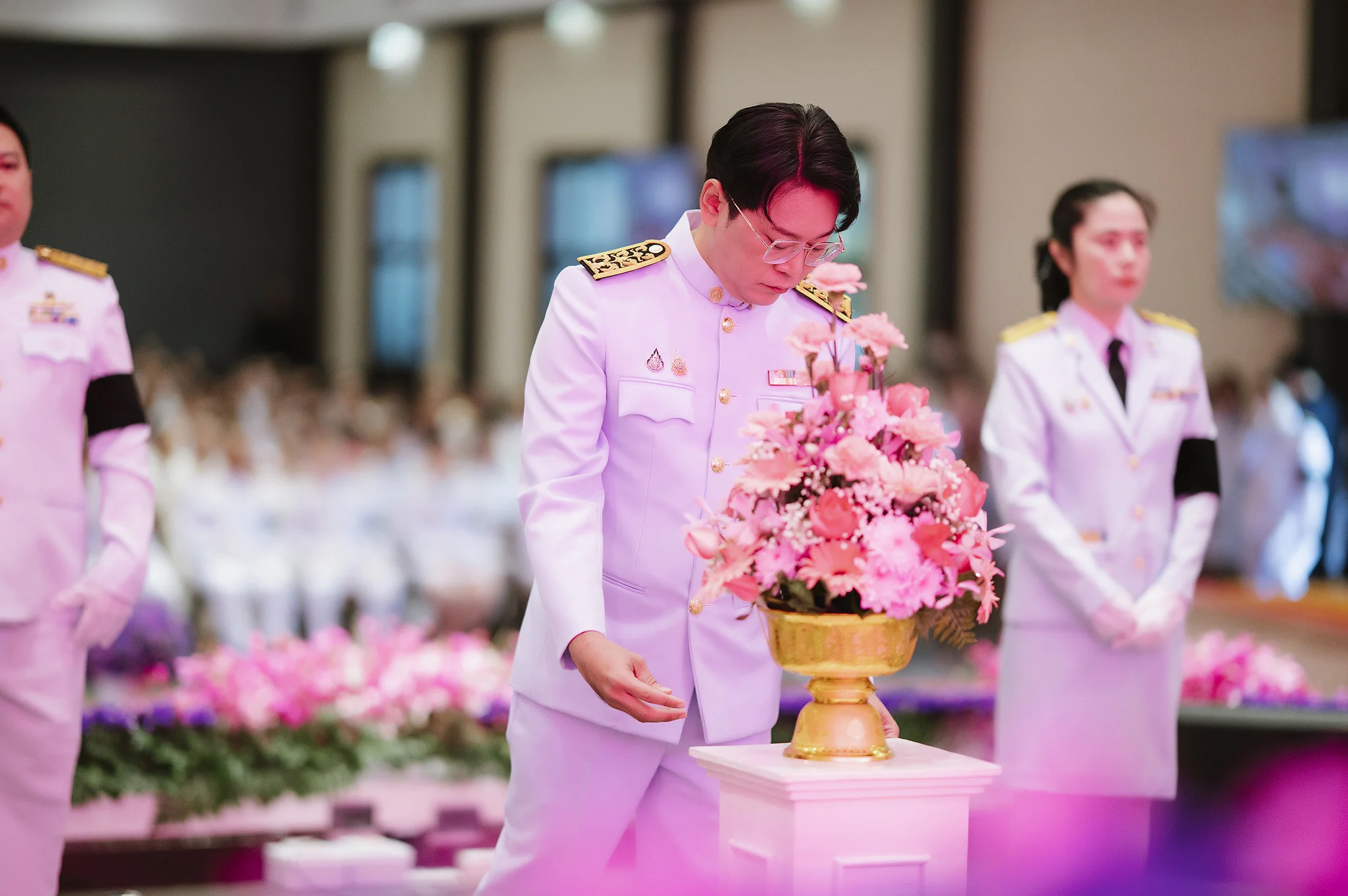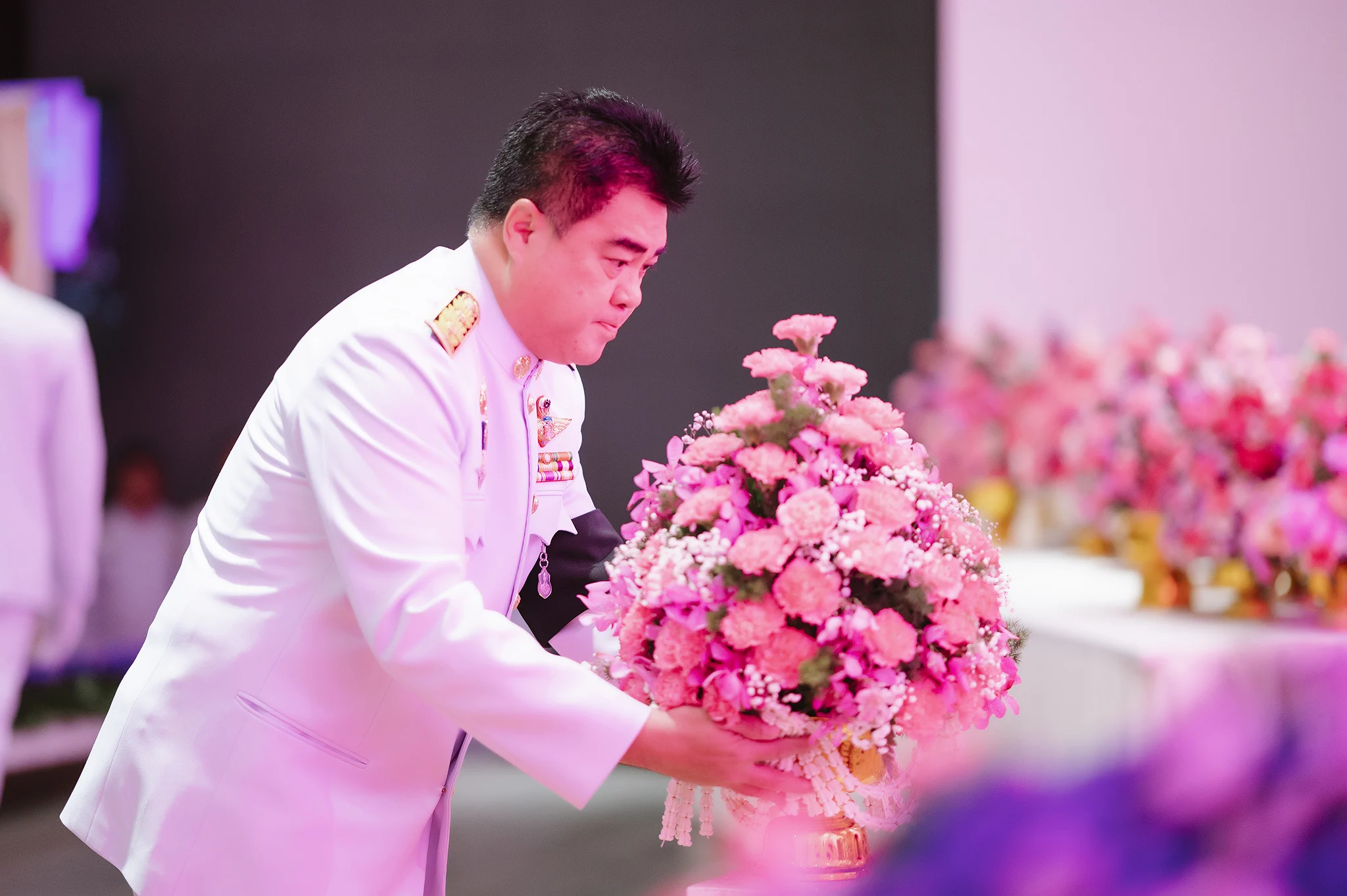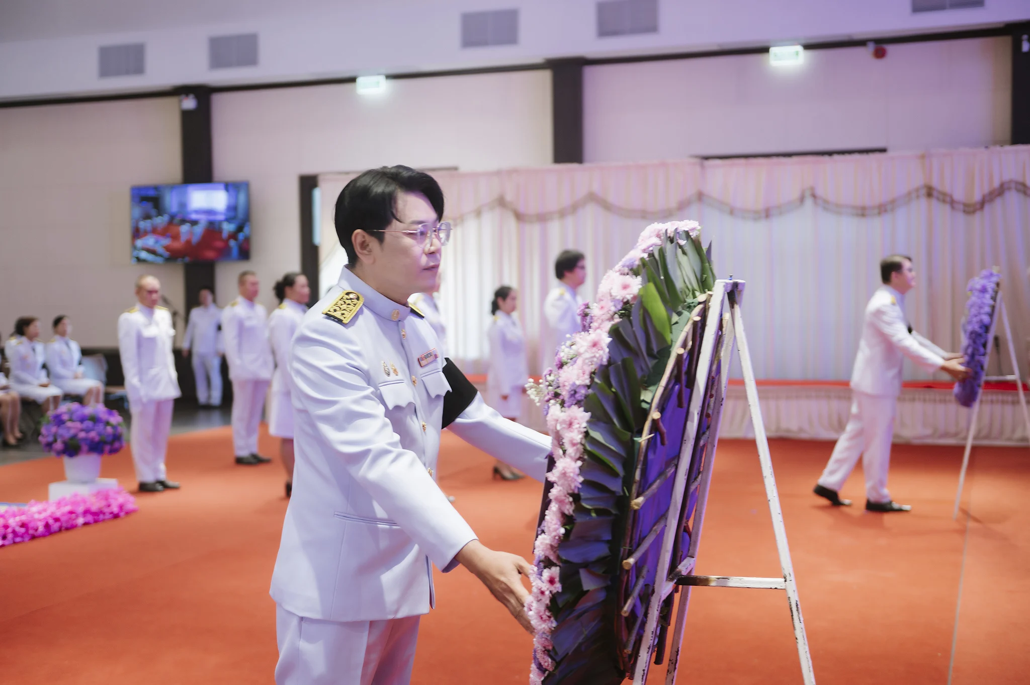 ในครั้งนี้ อาจารย์ ดร.รุ่งโรจน์ ต้นประดิษฐ์ รองผู้อำนวยการกองการสื่อสารองค์กรและประชาสัมพันธ์ มหาวิทยาลัยราชภัฏเชียงราย พร้อมด้วยตัวแทนบุคลากร ได้ร่วมประกอบพิธีวางพานพุ่มและถวายราชสักการะ ร่วมกับหัวหน้าส่วนราชการ องค์กรภาครัฐ ภาคเอกชน และประชาชนจำนวนมากที่มาร่วมแสดงความจงรักภักดีอย่างพร้อมเพรียง